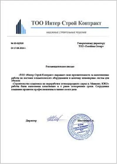 Данный объект Республиканского значения, требовал экспертности и быстрых сроков реализации. Нами были выполнены работы по корректировке рабочего проекта систем вентиляции и кондиционирования, с пересогласованием основного оборудования с быстрыми сроками изготовления и поставок. Нам удалось осуществить поставку оборудования кондиционирования за 14 календарных дней и вентиляции за 30 календарных дней (после окончательных согласований проекта с авторским и техническим надзорами.) Так же нами были выполнены все монтажные и пусконаладочные работы с полным запуском систем.